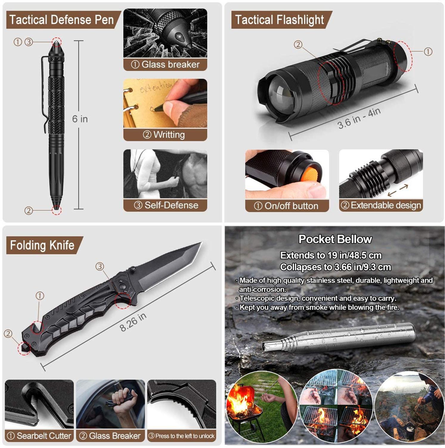 Det er et meget praktisk og praktisk professionelt overlevelsessæt, udstyret med kvalitetsstykker af overlevelsesudstyr og nødtilbehør, som kan opfylde dine forskellige behov i nød- og krisesituationer samt yde lægehjælp.