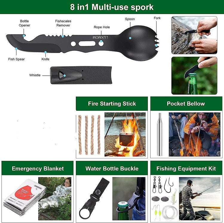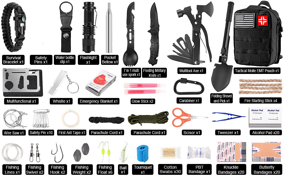 Det er et meget praktisk og praktisk professionelt overlevelsessæt, udstyret med 142 stykker overlevelsesudstyr og nødtilbehør, som kan opfylde dine forskellige behov i nød- og krisesituationer og yde lægehjælp.