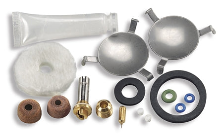 Indhold: rensenål, silikonefedt, dyse, forvarmningsvæge, 2 O-ringe til spindlen, pumpehovedpakning, pumpelæder, 2 brændstoffiltre, pumpeventilhus, gumminippel, ventilfjeder, fladtætning, O-ring 4*2,5, 2 brænderplader, beskyttelsesdæksel, O-ring 2,8*1,8, O-ring 2,2*1,7, pumpeventil, O-ring til hurtigkobling