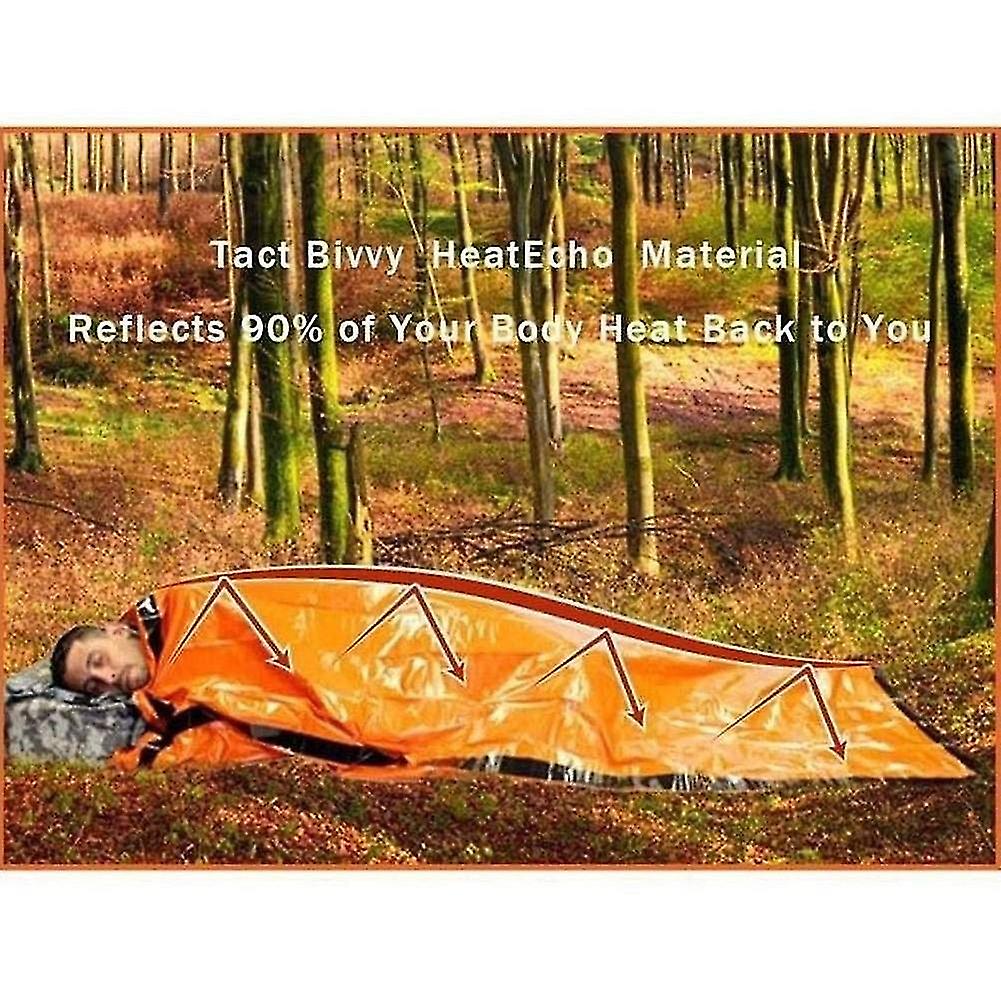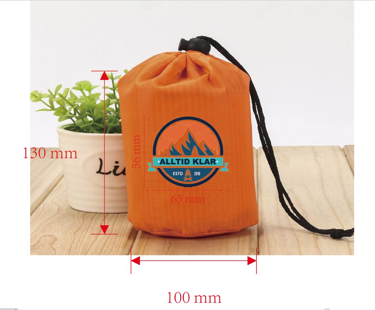 Nödsovsäck av "spaceblanket"-material. Denna nödsovsäck är vattentät och vindtät. Bevarar 90 % av kroppsvärmen.