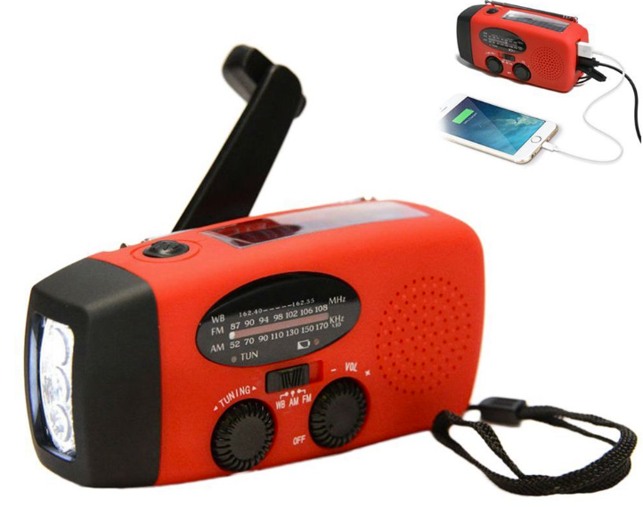 En kvalitets Radio med vev. Denna har AM/FM-radio samt ficklampa som laddas med vev, solljus eller USB.